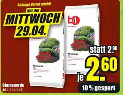 | 3 | b1 Blumenerde 40 l | B1 Discount Baumarkt | €2,90 | €2,50 | €0,40 Rabatt | 18 April 2026 | 24 April 2026 | Angebot anschauen | |