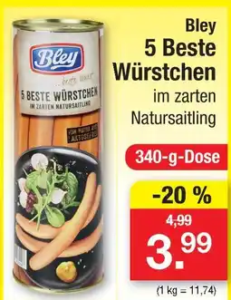 | 1 | Bley 5 beste würstchen | Zimmermann | €4,99 | €3,99 | €1,00 Rabatt | 19 Januar 2026 | 24 Januar 2026 | Angebot anschauen | |