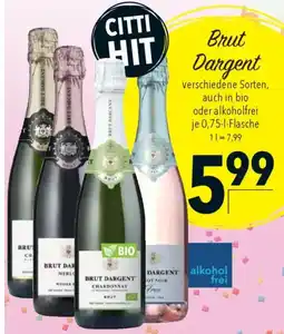 | 1 | Brut Dargent 750 ml | CITTI Markt | €5,99 | 11 Februar 2026 | 17 Februar 2026 | Angebot anschauen | |||