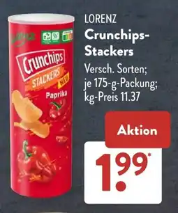 | 1 | LORENZ Crunchips- Stackers 175 g | Aldi Süd | €1,99 | 09 März 2026 | 15 März 2026 | Angebot anschauen | |||