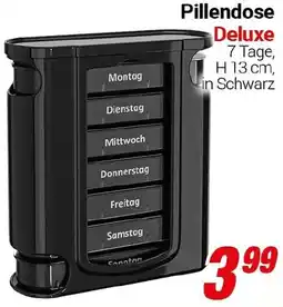 | 1 | Pillendose Deluxe | CENTERSHOP | €3,99 | 09 Februar 2026 | 14 Februar 2026 | Angebot anschauen | |||