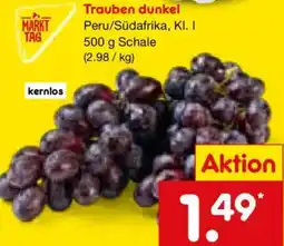 | 1 | Trauben dunkel 500 g | Netto Marken-Discount | €1,49 | 16 Februar 2026 | 21 Februar 2026 | Angebot anschauen | |||