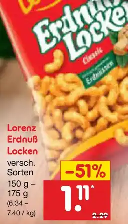 | 1 | Lorenz Erdnuẞ Locken 150 - 175 g | Netto Marken-Discount | €2,27 | €1,11 | -51% | 12 April 2026 | 18 April 2026 | Angebot anschauen | |