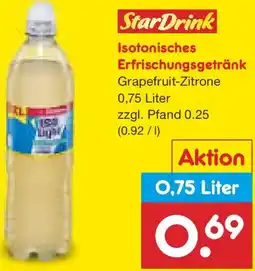 | 1 | StarDrink Isotonisches Erfrischungsgetränk 0.75 l | Netto Marken-Discount | €0,69 | 05 Januar 2026 | 10 Januar 2026 | Angebot anschauen | |||