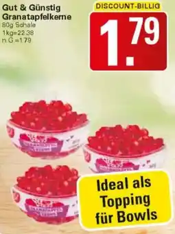 | 1 | Gut & Günstig Granatapfelkerne 80 g | WEZ | €1,79 | 09 Februar 2026 | 14 Februar 2026 | Angebot anschauen | |||
