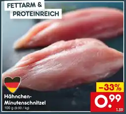 | 2 | Hähnchen Minutenschnitzel 100 g | Netto Marken-Discount | €1,59 | €0,99 | -33% | 05 Januar 2026 | 10 Januar 2026 | Angebot anschauen | |