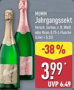 | 2 | MUMM Jahrgangssekt 0.75 l | Aldi Nord | €6,49 | €3,99 | -38% | 02 März 2026 | 07 März 2026 | Angebot anschauen | |