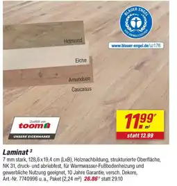 | Laminat,,Pinie'' | toom Baumarkt | €10,99 | €9,99 | €1,00 Rabatt | 28 März 2026 | 03 April 2026 | |