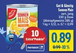 | GUT & GUNSTIG Sonnen Mais 330 g | E-Center | €0,77 | 14 Dezember 2025 | 20 Dezember 2025 | |||