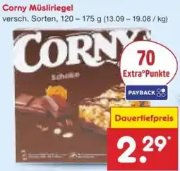 | 1 | Corny Müsliriegel 120 - 175 g | Netto Marken-Discount | €2,29 | 26 Januar 2026 | 31 Januar 2026 | Angebot anschauen | |||