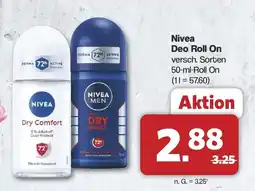 | 2 | Nivea Deo Roll On 50 ml | Famila Nord West | €3,25 | €2,88 | €0,37 Rabatt | 16 Februar 2026 | 21 Februar 2026 | Angebot anschauen | |