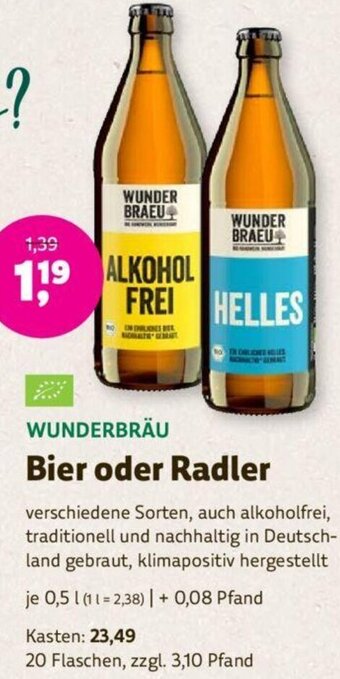 WUNDERBRÄU Bier oder Radler