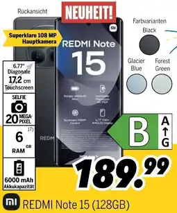 | Xiaomi REDMI Note 15 (128GB) | MEDIMAX | €189,99 | 12 Dezember 2025 | 19 Dezember 2025 | |||