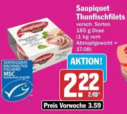| Saupiquet Thunfischfilets Sonnenblumenöl oder Naturale 185 g | HIT | €3,59 | €2,49 | €1,10 Rabatt | 30 März 2026 | 04 April 2026 |