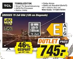 | TCL LED-TV 75MQLED75K | expert Techno Land | €799,00 | 17 Dezember 2025 | 27 Dezember 2025 | |||