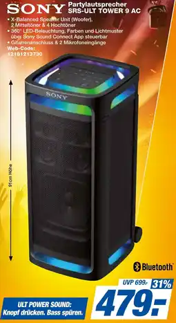 | 1 | SONY Partylautsprecher SRS-ULT TOWER 9 AC | expert Techno Land | €699,00 | €479,00 | -31% | 05 Februar 2026 | 12 Februar 2026 | Angebot anschauen | |