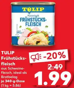 | 1 | TULIP Frühstücksfleisch 340 g | Kaufland | €2,49 | €1,99 | -20% | 05 Februar 2026 | 11 Februar 2026 | Angebot anschauen | |