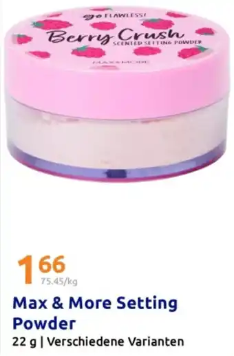 Werfen Sie einen Blick auf die günstigsten Produkte zwischen all den Angeboten! Wenn Sie gerne wissen möchten, ob Action die höchsten Rabatte für Max & More Setting Powder anbietet, vergleichen Sie die Angebote ganz einfach auf der Startseite mit den anderen Geschäften.