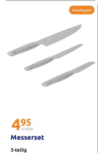 Den Preis von dem Messerset finden Sie auch oben auf der Website, zusammen mit dem Datum, ab wann das Angebot erhältlich ist. Sie können die Preise auch im aktuellen Action Prospekt nachhalten oder auf der Action Website nachschauen. Durch die Angebote können Sie sicher sein, die Action Produkte zum absoluten Bestpreis zu ergattern.