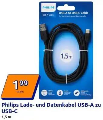 Philips Lade- und Datenkabel USB-A zu USB-C-Angebot bei Action