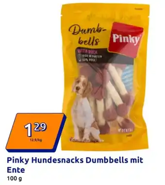 Jetzt im Angebot bei Action: Pinky Hundesnacks Dumbbells mit Ente ✅ Aktion gültig vom 21-01 bis 27-01.
