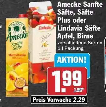 Amecke Sanfte Säfte Plus oder Lindavia Säfte Apfel, Birne 1 l