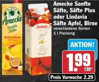 Amecke Sanfte Säfte, Säfte Plus oder Lindavia Säfte Apfel, Birne 1 l