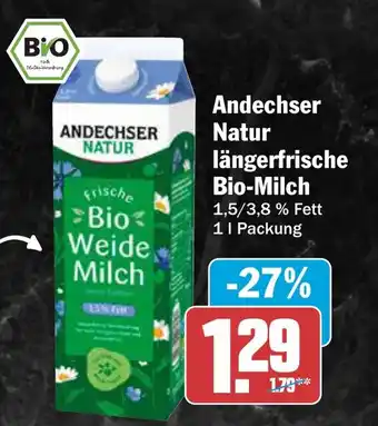 Andechser Natur längerfrische Bio-Milch-Angebot bei AEZ