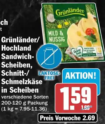 Grünländer/ Hochland Sandwich Scheiben, Schnitt-/ Schmelzkäse in Scheiben-Angebot bei AEZ