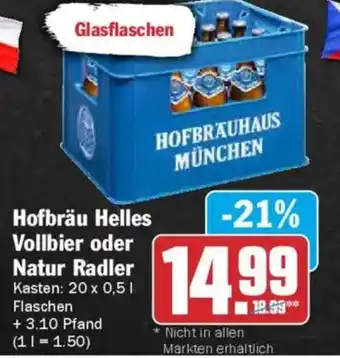 Hofbräu Helles Vollbier oder Natur Radler
