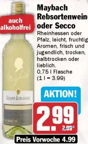 Jetzt im Angebot bei AEZ: Maybach Rebsortenweine oder Secco ✅ Aktion gültig vom 2-02 bis 8-02.