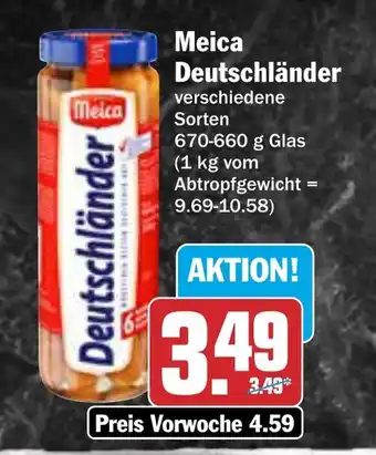 Den Preis von dem Meica Deutschländer finden Sie auch oben auf der Website, zusammen mit dem Datum, ab wann das Angebot erhältlich ist. Sie können die Preise auch im aktuellen AEZ Prospekt nachhalten oder auf der AEZ Website nachschauen. Durch die Angebote können Sie sicher sein, die AEZ Produkte zum absoluten Bestpreis zu ergattern.