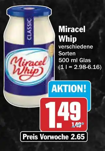 Miracel Whip ist jetzt im Angebot bei AEZ, gültig vom 12-01-2026 bis 17-01-2026. Besuchen Sie die Website von AEZ oder kaufen Sie Miracel Whip direkt im Geschäft. Auf Prospektangebote.de finden Sie immer die besten aktuellen Aktionen. Vergleichen Sie Miracel Whip mit anderen Angeboten und prüfen Sie, ob sich ein Kauf jetzt lohnt. Behalten Sie kommende Aktionen im Blick, denn manche Produkte sind nur nächste Woche oder nur vor Ort verfügbar.Häufig gestellte Fragen über Miracel Whip