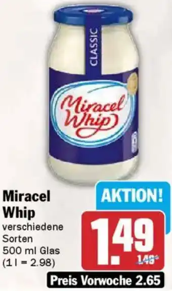Miracel Whip ist jetzt im Angebot bei AEZ, gültig vom 02-02-2026 bis 08-02-2026. Besuchen Sie die Website von AEZ oder kaufen Sie Miracel Whip direkt im Geschäft. Auf Prospektangebote.de finden Sie immer die besten aktuellen Aktionen. Vergleichen Sie Miracel Whip mit anderen Angeboten und prüfen Sie, ob sich ein Kauf jetzt lohnt. Behalten Sie kommende Aktionen im Blick, denn manche Produkte sind nur nächste Woche oder nur vor Ort verfügbar.Häufig gestellte Fragen über Miracel Whip