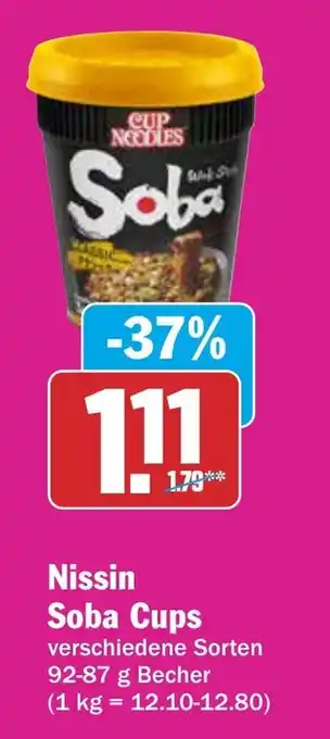 Das Angebot ist in verschiedenen Geschäften erhältlich. Schauen Sie sich alle Produkte an, um das günstigste Nissin Soba Cups zu ergattern. Wenn Sie gerne nachschauen möchten, ob der Artikel woanders noch günstiger ist, werfen Sie einen Blick auf die Kategorie 'Supermärkte'. Möglicherweise sind diese Angebote auch interessant für Sie: Nissin Soba Bag, Nissin Cup Noodles Soba Protein & Nissin Cup Noodles Soba Protein.