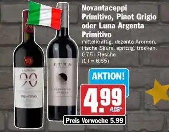 Jetzt im Angebot bei AEZ: Novantaceppi Primitivo, Pinot Grigio oder Luna Argenta Primitivo ✅ Aktion gültig vom 22-12 bis 27-12.
