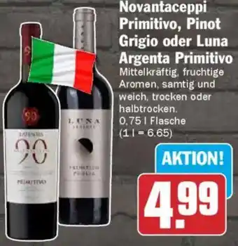 Novantaceppi Primitivo, Pinot Grigio oder Luna Argenta Primitivo-Angebot bei AEZ