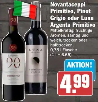 Novantaceppi Primitivo, Pinot Grigio oder Luna Argenta Primitivo Angebote und Aktionen bei AEZ
