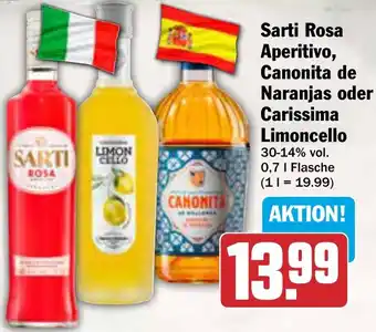 Jetzt im Angebot bei AEZ: Sarti Rosa Aperitivo, Canonita de Naranjas oder Carissima Limoncello ✅ Aktion gültig vom 29-12 bis 3-01.