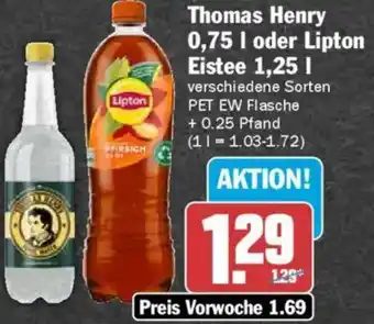 Thomas Henry 0,75 I oder Lipton Eistee 1,25 I Aktion bei AEZ