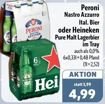 Peroni Nastro Azzurro Ital. Bier oder Heineken Pure Malt Lagerbier im Tray Angebote und Aktionen bei Aktiv Irma