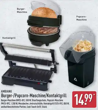 AMBIANO Burger-/Popcorn-Maschine/Kontaktgrill Angebote und Aktionen bei Aldi Nord