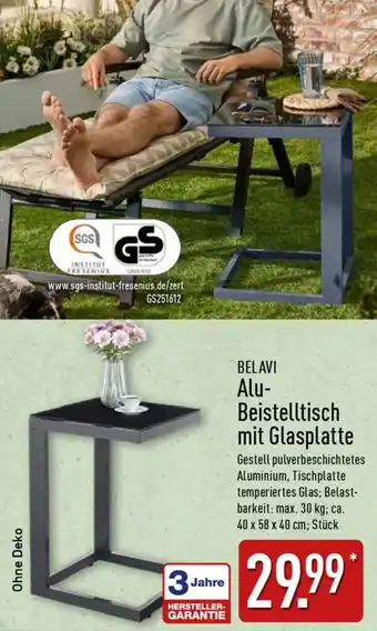 BELAVI Alu Beistelltisch mit Glasplatte-Rabatt bei Aldi Nord