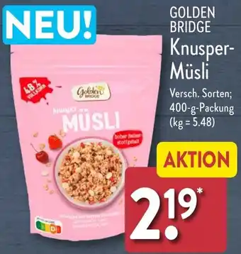 GOLDEN BRIDGE Knusper Müsli 400 g Packung Aktion bei Aldi Nord