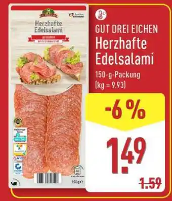 Jetzt im Angebot bei Aldi Nord: GUT DREI EICHEN Herzhafte Edelsalami ✅ Aktion gültig vom 9-02 bis 14-02.