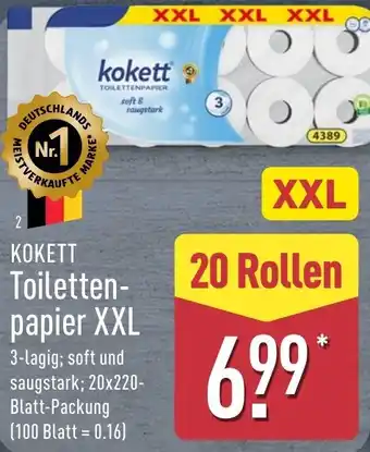 Jetzt im Angebot bei Aldi Nord: KOKETT Toilettenpapier XXL ✅ Aktion gültig vom 2-03 bis 7-03.