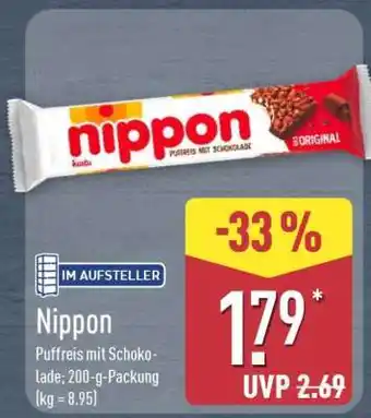 Abgesehen von NIPPON, bietet Aldi Nord eine Menge anderer Artikel an. Behalten Sie den wöchentlichen Aldi Nord Prospekt im Blick, um die besten Angebote und Aktionen nicht zu verpassen. Abgesehen von NIPPON können Sie weitere, interessante Angebote entdecken: Nippon, Nippon & nippon Puffreis mit Schokolade.