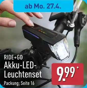 Jetzt im Angebot bei Aldi Nord: RIDE+GO Akku-LED- Leuchtenset ✅ Aktion gültig vom 27-04 bis 2-05.