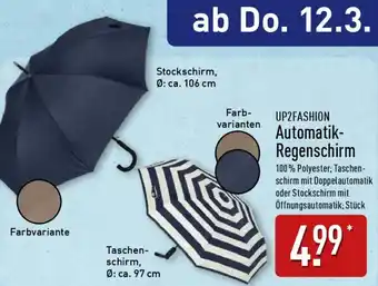 Jetzt im Angebot bei Aldi Nord: UP2FASHION Automatik Regenschirm ✅ Aktion gültig vom 9-03 bis 14-03.
