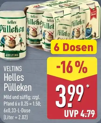 Jetzt im Angebot bei Aldi Nord: VELTINS Helles Pülleken 6 Dosen ✅ Aktion gültig vom 2-03 bis 7-03.